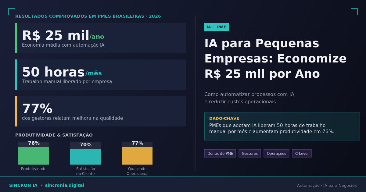 Descubra como a IA para pequenas empresas pode economizar R$ 25 mil/ano. Veja dados reais de PMEs brasileiras e como implementar automação na sua empresa.